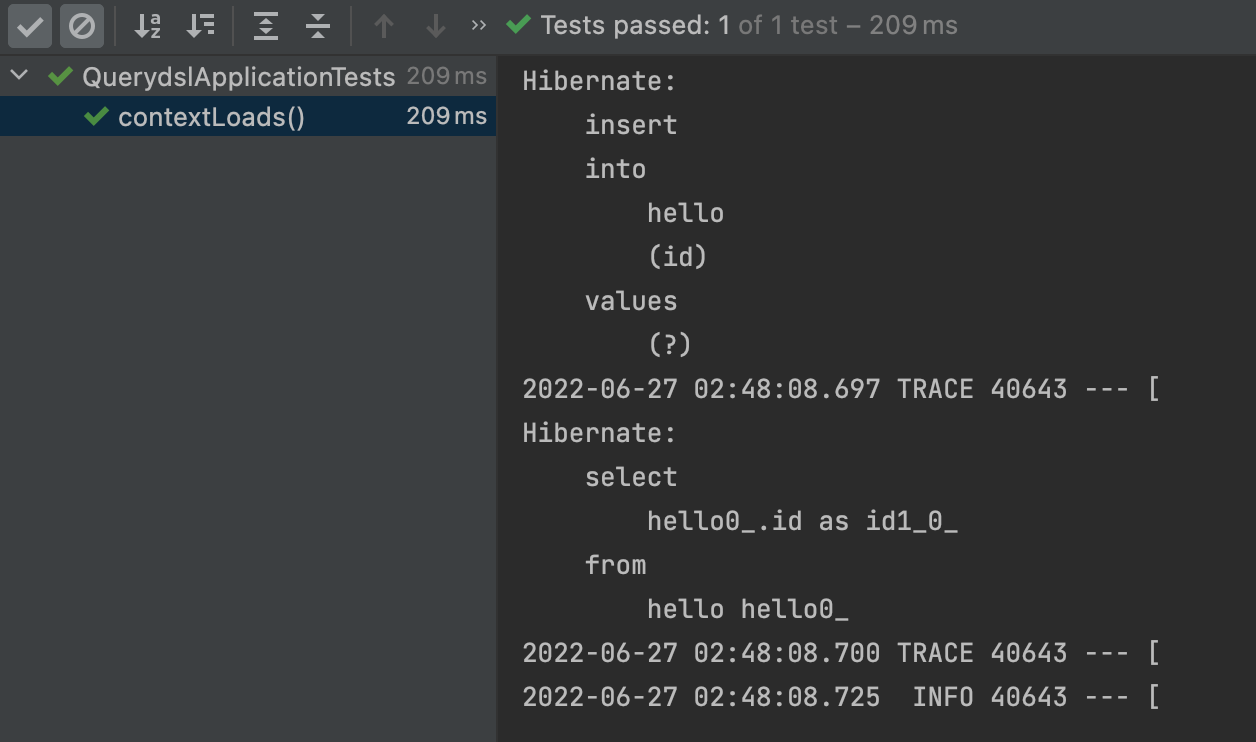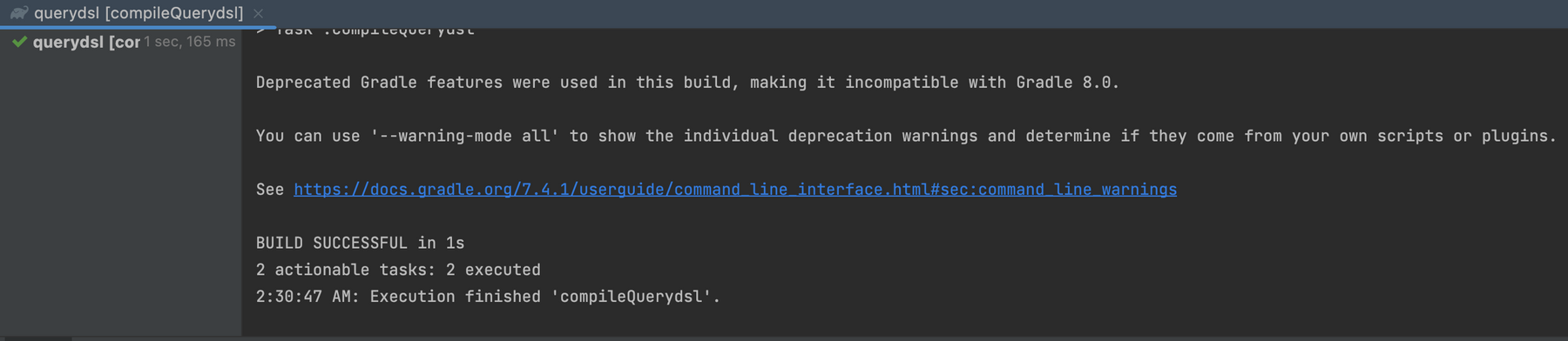 여기까지 정상동작이 확인되면 Querydsl을 사용할 준비가 끝났다.